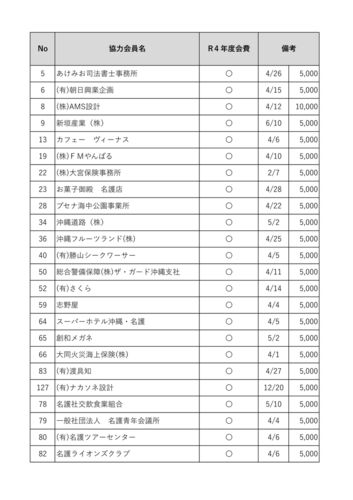 北海道日本ハムファイターズ名護協力会の令和4年度会費納入にご協力頂きました法人会員様・個人会員様